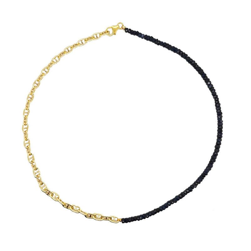 Half and Half Blue Sapphire Bead and Gold Plated Chain Necklace- ALL NEW BOUTIQUE EXCLUSIVE
