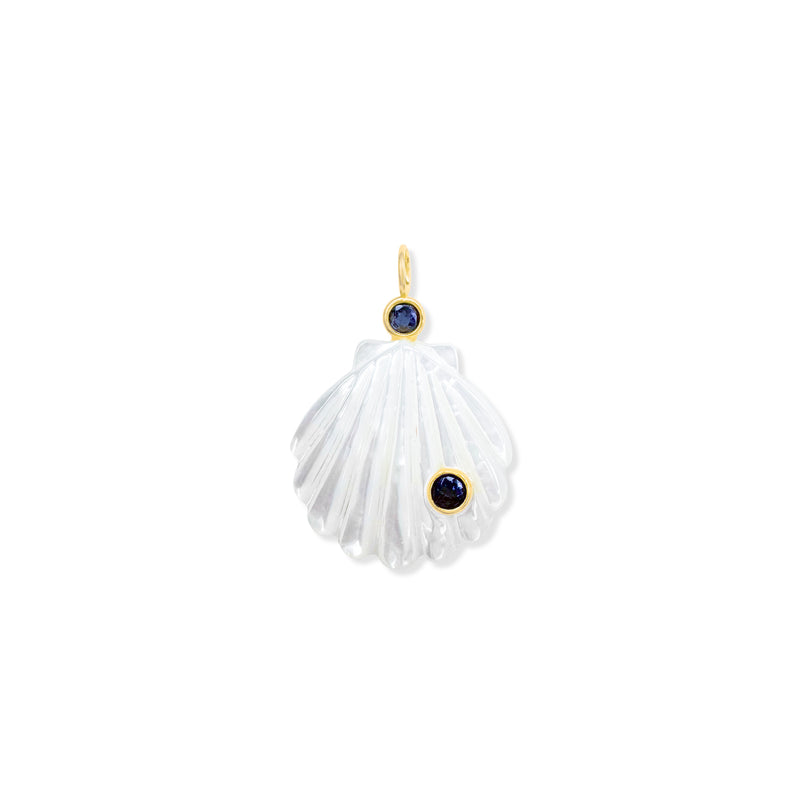 Prosperity Fish Rope Chain Necklace in Blue Chalcedony and Mother of Pearl