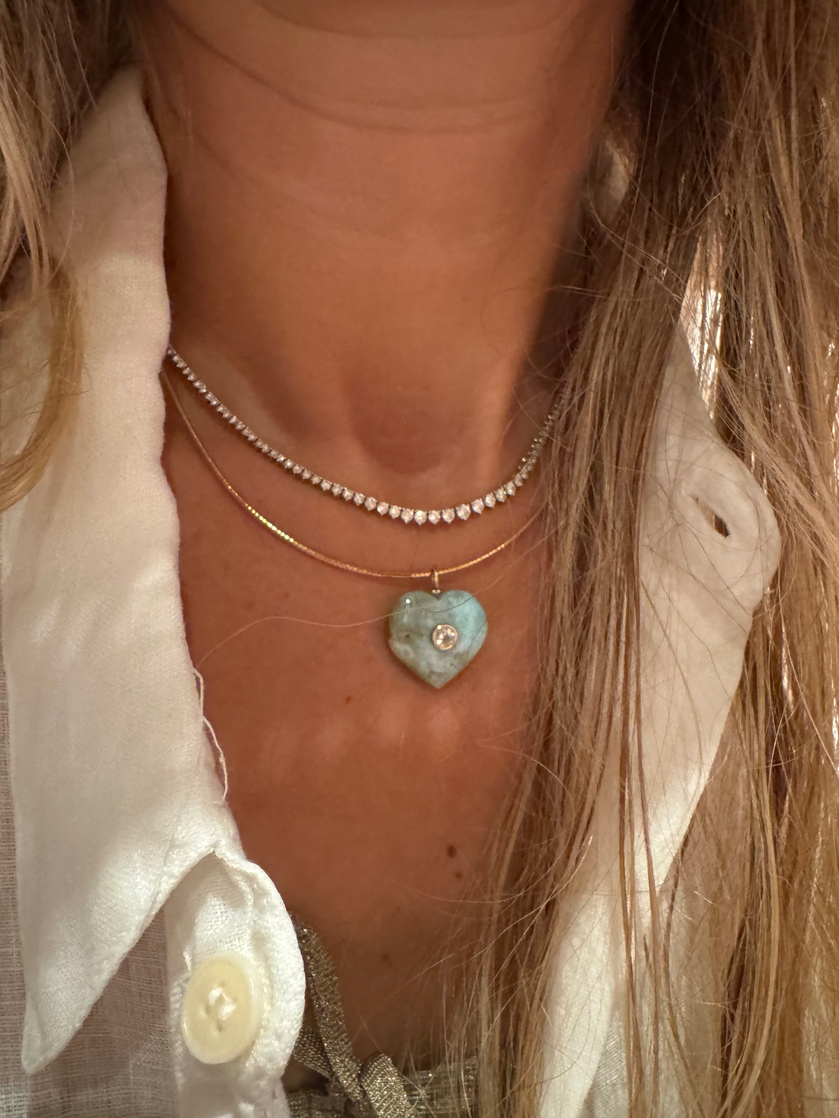 Textured Light Turquoise Heart Charm with Blue Topaz Inlay
