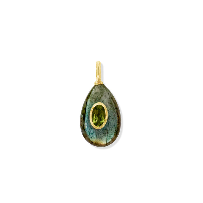 Mini Labradorite Pear Drop Charm with Peridot Inlay