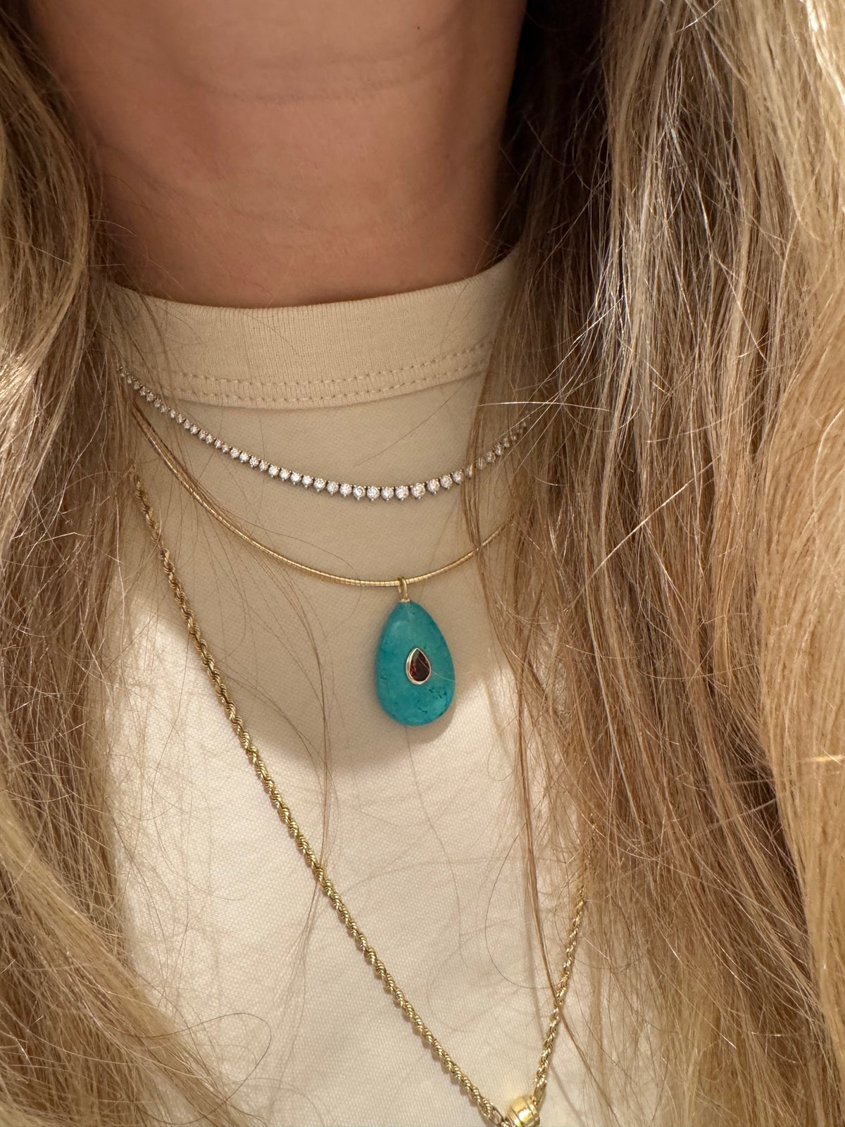 Mini Amazonite Pear Drop Charm with Blue Topaz Inlay